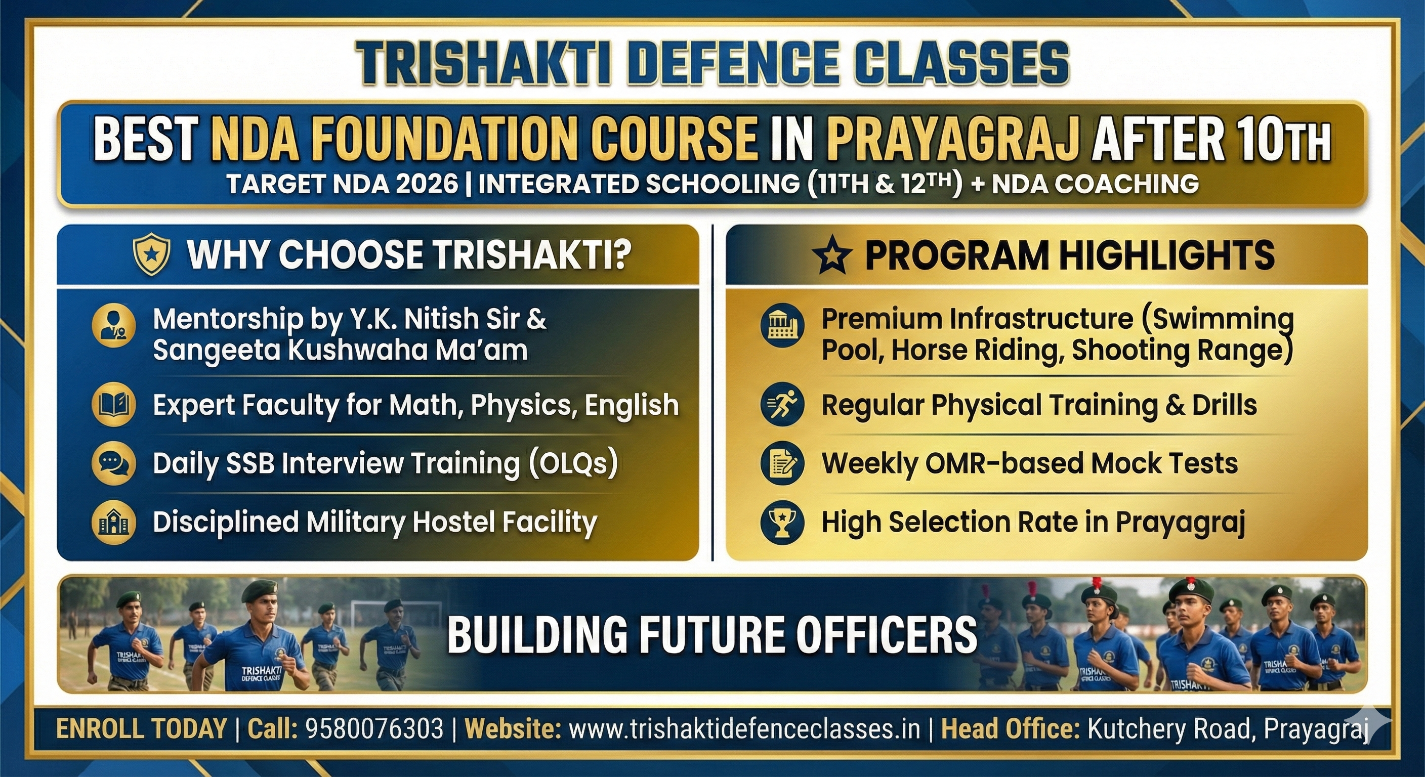 Phone Number: 9580076303 ​Official Website : www.trishaktidefenceclasses.in Head office: Kutchery Road, Prayagraj, Uttar Pradesh